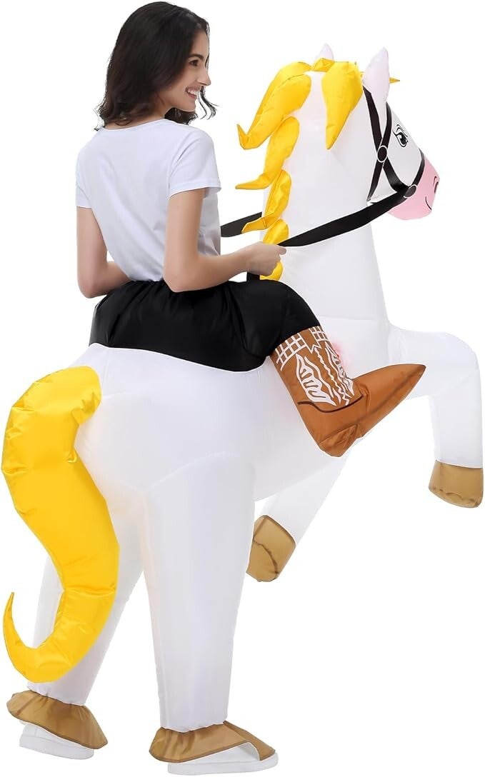 - Adult Halloween Blow Up Costumes Ride On White Horse Costume Funny Riding Horse Suit for Men Women Cosplay Kentucky Derby Party