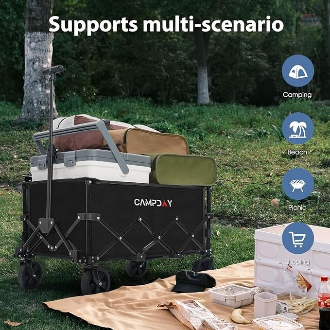 - 【All-Purpose Use for Any Scenario】From grocery hauls to weekend adventures, this foldable wagon cart adapts to every lifestyle. Use it as a wagon cart, folding wagon, or shopping cart on wheels.